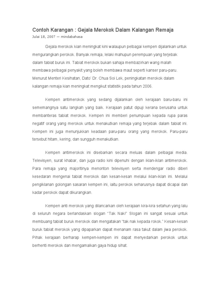 Lihat kawan hisap rokok seseorang cenderung mahu mencuba. Contoh Karangan. Sememangnya tidak dapat dinafikan bahawa hal ini juga disebabkan.